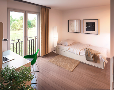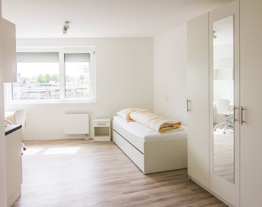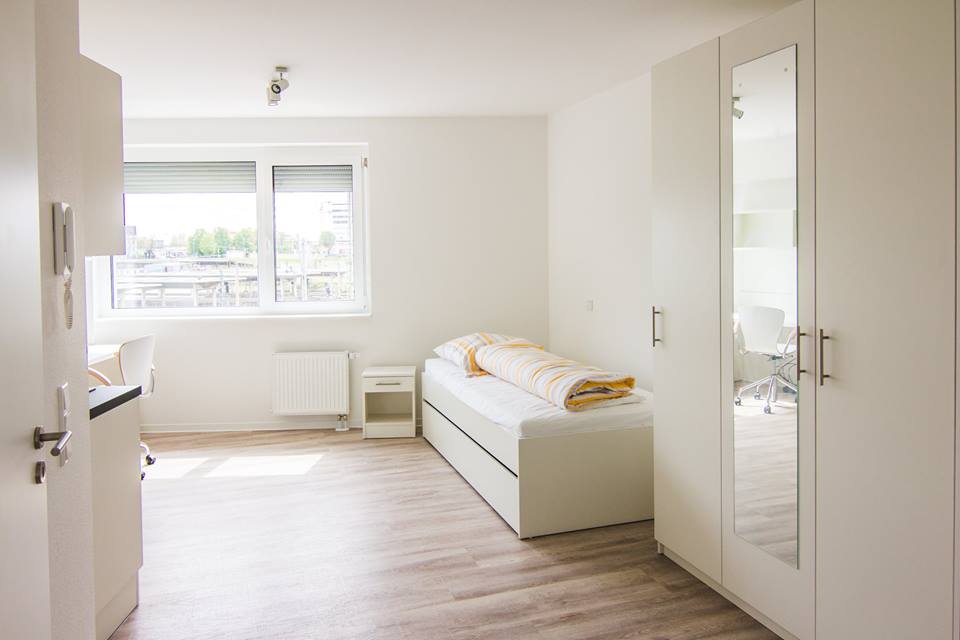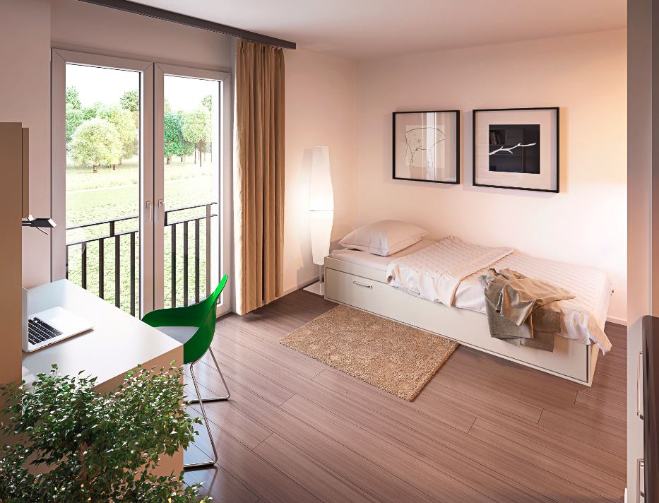 位于 Bergheim 区域,紧邻火车总站,距校区约 1 公里。房型为带独立浴室和厕所的小型公寓,厨房共用。设备完善、现代化程度高,是追求居住品质同时希望保持出行便利的理想选择。